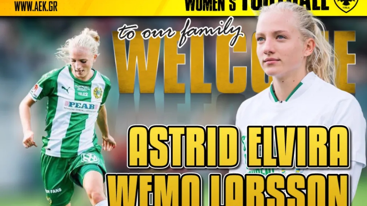 Η ΑΕΚ βρίσκεται στην ευχάριστη θέση να ανακοινώσει την έναρξη της συνεργασίας της με την Άστριντ Ελβίρα Λάρσον. Η 26χρονη (07/09/1999) Σουηδή μέσος, υπέγραψε το συμβόλαιό της και εντάσσεται στο δυναμικό της γυναικείας ομάδας Ποδοσφαίρου του Συλλόγου.