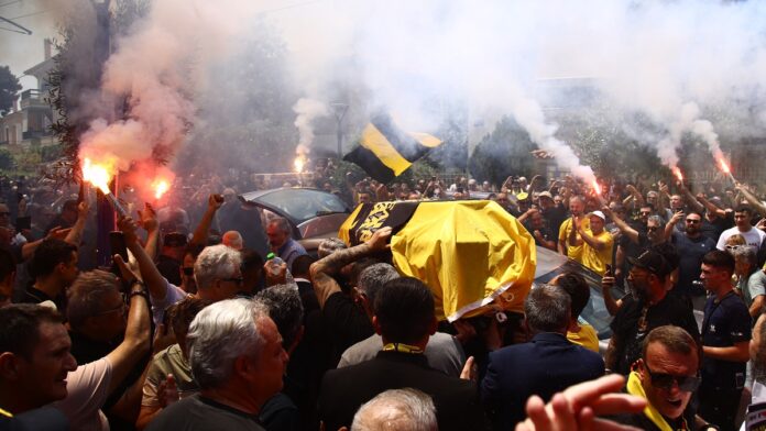 Δύο ώρες νωρίτερα η σορός του Χατζηχρήστου είχε μεταφερθεί στην OPAP Arena προκειμένου όποιος ήθελε να μπορέσει να πει το δικό του ξεχωριστό αντίο.
