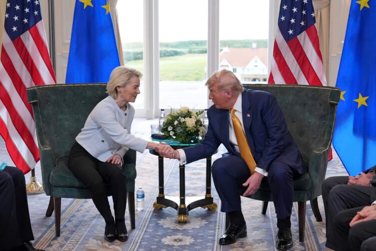 Ο πρόεδρος των ΗΠΑ Ντόναλντ Τραμπ ανακοίνωσε «τη μεγαλύτερη εμπορική συμφωνία» που έχει επιτευχθεί ποτέ, μεταξύ των ΗΠΑ και της Ευρωπαϊκής Ένωσης, κατά τις συνομιλίες που είχε σήμερα στο Τέρνμπερι της Σκωτίας με την πρόεδρο της Ευρωπαϊκής Επιτροπής Ούρσουλα φον ντερ Λάιεν.