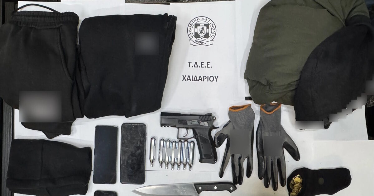 Όπως επισημαίνεται στη σχετική ανακοίνωση της ΕΛΑΣ, είχαν αποκρύψει αεροβόλο πιστόλι, μαχαίρι και γάντια σε θάμνους στο προαύλιο σχολείου στο Χαϊδάρι.