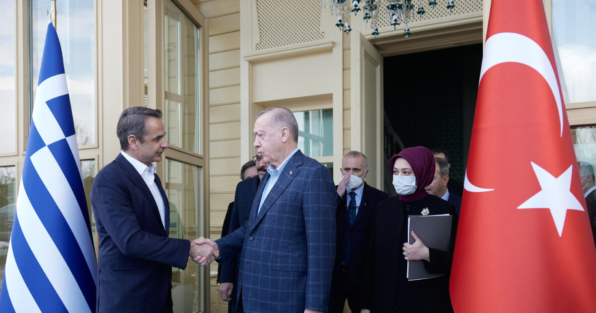 Στιγμιότυπο από τη συνάντηση του πρωθυπουργού, Κυριάκου Μητσοτάκη με τον πρόεδρο της Τουρκίας, Ρετζέπ Ταγίπ Ερντογάν στην Κωνσταντινούπολη τον Μάρτιο του 2022.