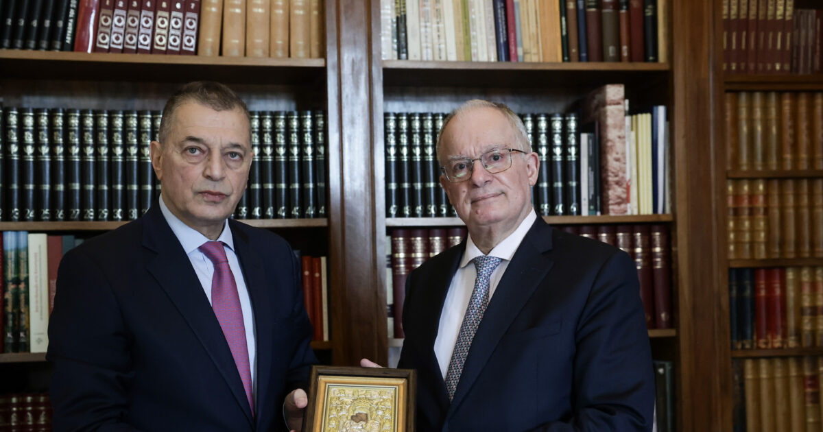 Ο Πρόεδρος της Δημοκρατίας Κωνσταντίνος Τασούλας και ο πολιτικός διοικητής του Αγίου Όρους, στρατηγός ε.α. Αλκιβιάδης Στεφανής, στο Προεδρικό Μέγαρο (Πηγή φωτογραφίας: (ΘΟΔΩΡΗΣ ΜΑΝΩΛΟΠΟΥΛΟΣ/ΓΡΑΦΕΙΟ ΤΥΠΟΥ ΠΡΟΕΔΡΙΑΣ ΤΗΣ ΔΗΜΟΚΡΑΤΙΑΣ/EUROKINISSI)
