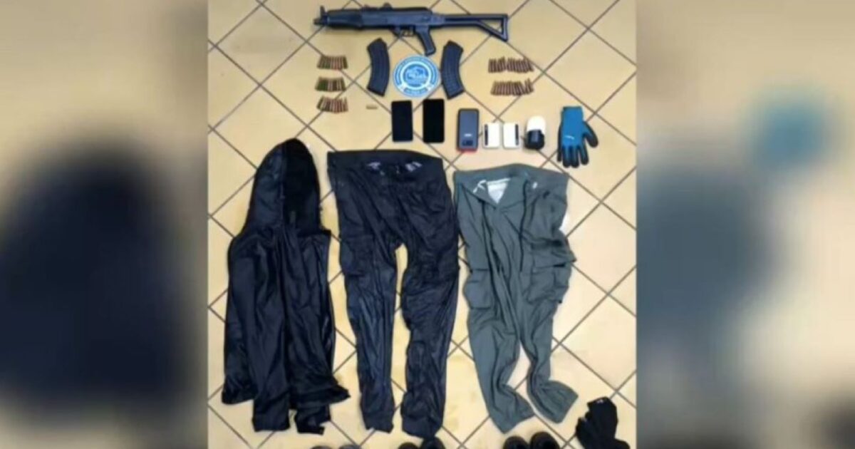 Ακολούθησε έρευνα στη μισθωμένη κατοικία, όπου εντοπίστηκε o κρατούμενος των φυλακών Λάρισας, ο οποίος επιχείρησε να διαφύγει χωρίς επιτυχία. Στο εσωτερικό του σπτιού βρέθηκαν και κατασχέθηκαν ένα πολεμικό τυφέκιο τύπου καλάσνικοφ, δύο γεμιστήρες και 57 φυσίγγια.