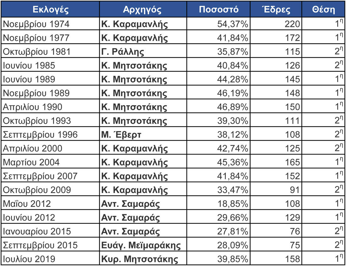 Η εκλογική πορεία της Νέας Δημοκρατίας