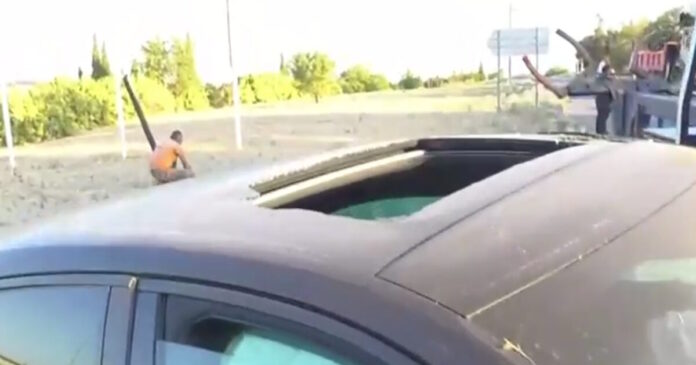 Ο οδηγός της Porsche μετά το τροχαίο, έσπασε την ηλιοροφή του αυτοκινήτου και εξαφανίστηκε από το σημείο.
