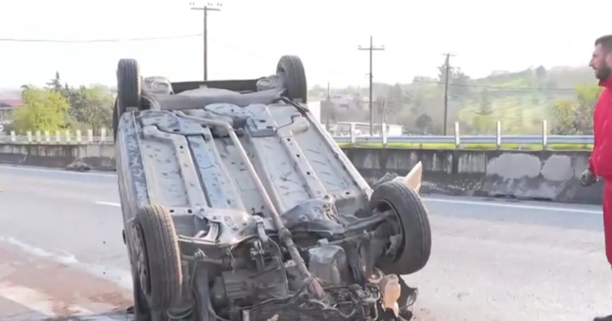 Το αυτοκίνητο αναποδογύρισε στην Εθνική Οδό Θεσσαλονίκης- Μουδανίων