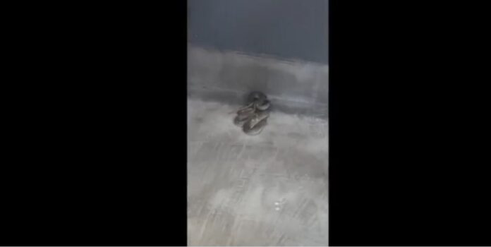 Όπως φαίνεται και στο βίντεο που αναρτήθηκε στα μέσα κοινωνικής δικτύωσης, το φίδι είχε τρυπώσει στο κουρείο, με τους καταστηματάρχες να καλούν την Πυροσβεστική προκειμένου να το απομακρύνει.