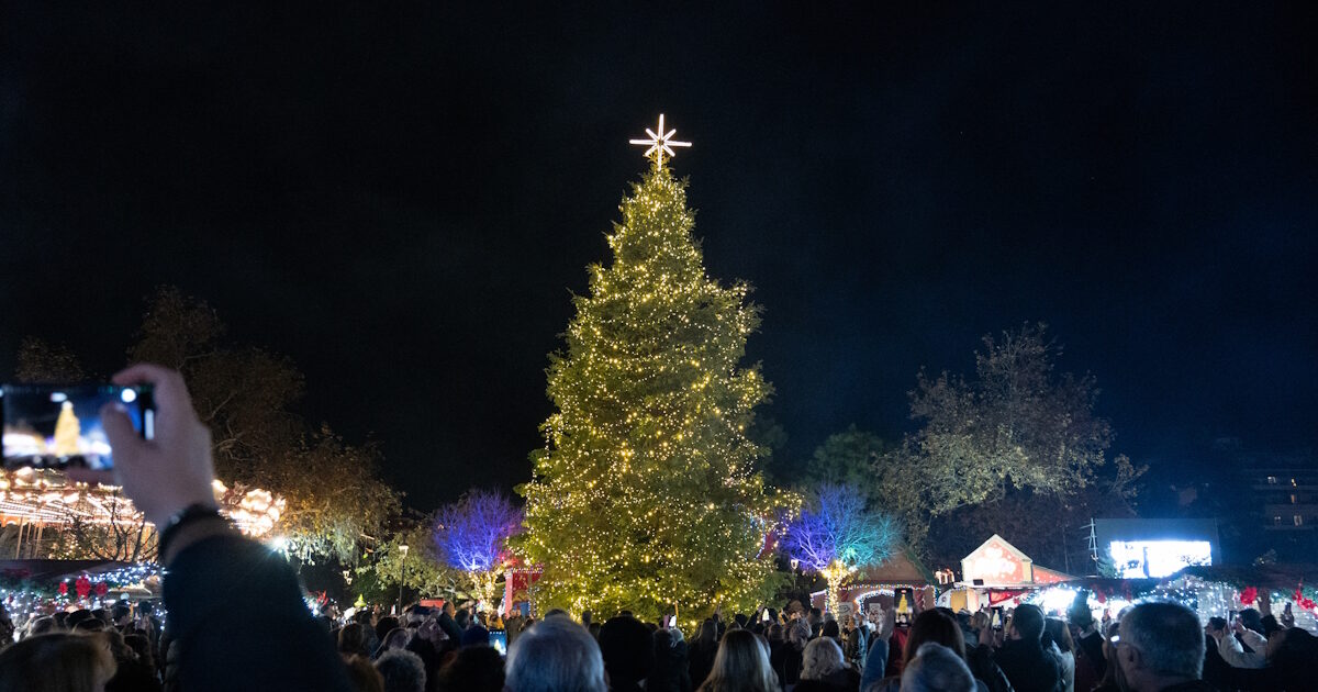 Με πλούσια εδέσματα, ζεστό κρασί και ζεστασιά στις καρδιές πλήθους κόσμου φωταγωγήθηκε στη Θεσσαλονίκη το χριστουγεννιάτικο δέντρο που στολίζει το «Χωριό των Μαγεμένων».
