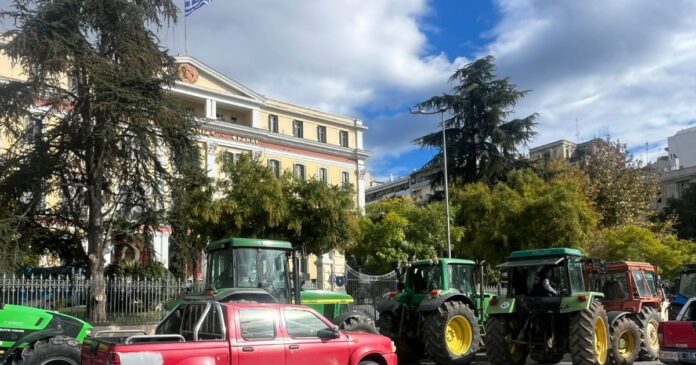 Με τρακτέρ και αγροτικά αυτοκίνητα έχουν συγκεντρωθεί έξω από το υπουργείο Μακεδονίας – Θράκης κτηνοτρόφοι και αγρότες στη Θεσσαλονίκη, το μεσημέρι της Τρίτης (11.1.25).