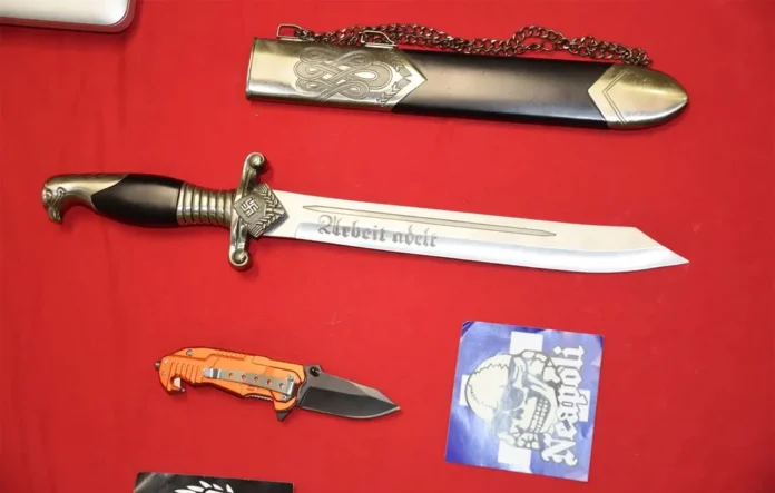 Σε αστυνομικές έρευνες στα σπίτια των συλληφθέντων βρέθηκαν και κατασχέθηκαν ρουχισμός και τεμάχια υφάσματος με εθνικιστικά σύμβολα, πλήθος αυτοκόλλητων, βιβλία και έντυπο υλικό που απεικονίζουν εθνικιστικά σύμβολα, σύμβολα ρατσιστικής φύσεως και λογότυπα της οργάνωσης, όπλα, όπως σιδηρογροθιές, μαχαίρια, σπαθί, μεταλλικές και ξύλινοι ράβδοι, κυνηγετικά φυσίγγια, σφεντόνα και πυροτεχνική κατασκευή, συσκευασίες κάνναβης, ζυγαριά ακριβείας, 33 κινητά τηλέφωνα, 6 ηλεκτρονικοί υπολογιστές και δύο αντιασφυξιογόνες μάσκες.