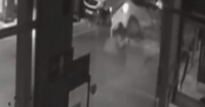 Το όχημα κατεβαίνει την οδό Μαιάνδρου, κάνει ελιγμό προς τα δεξιά και τότε φαίνεται πως η ρόδα του χτύπησε σε άλλο αυτοκίνητο που ήταν σταθμευμένο.