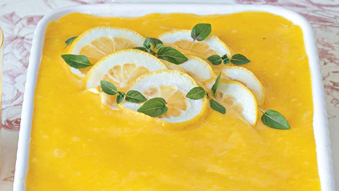 Λίγο πριν το σερβίρισμα, απλώνουμε στην επιφάνεια την υπόλοιπη κρέμα λεμονιού.