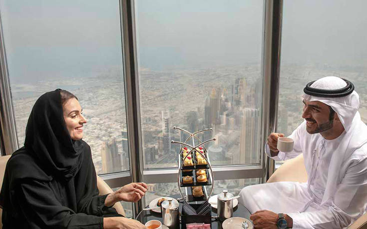 Το άρτι αφιχθέν The Lounge απλώνεται σε τρεις ορόφους (152-153-154) στο ψηλότερο κτήριο στον κόσμο, το Burj Khalifa, σε ύψος 575 μέτρων, και λειτουργεί τόσο ως μπαρ, όσο και ως εστιατόριο.
