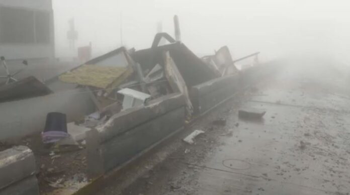 Σήμερα έχει ανοίξει η μία λωρίδα του δρόμου προς Κοζάνη. Παντού υπάρχουν πριονίδια, ενώ τα δύο κουβούκλια έχουν ξηλωθεί από το σημείο μετά.