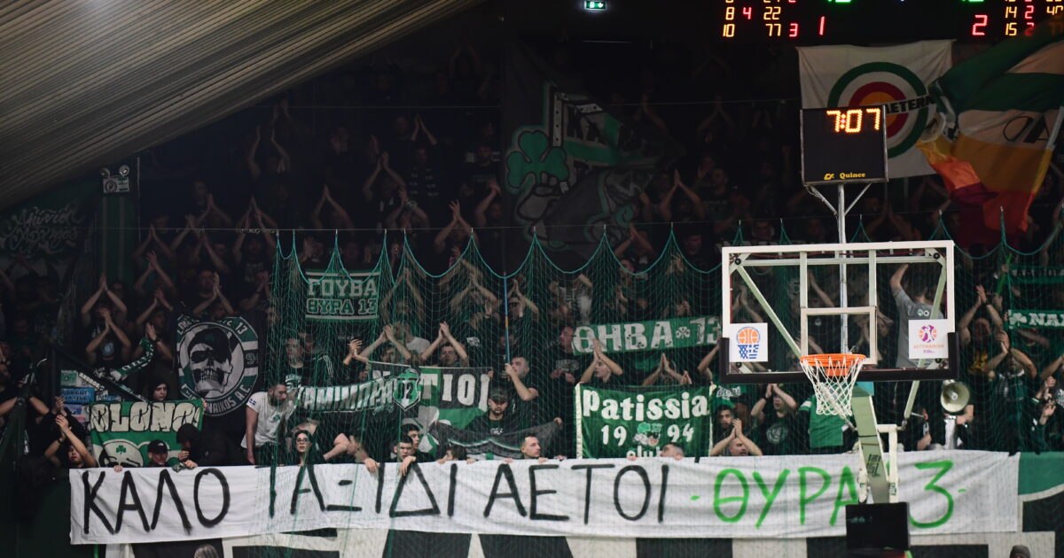 Στο κλειστό της Λεωφόρου οι φίλοι του Παναθηναϊκού τίμησαν τη μνήμη των οπαδών του ΠΑΟΚ, που έχασαν τη ζωή τους στο σοκαριστικό τροχαίο στη Ρουμανία, με ένα πανό που έγραφε «καλό ταξίδι αετοί».
