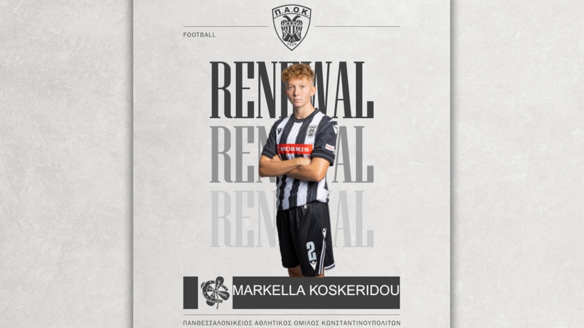 Ο ΠΑΟΚ, και το τμήμα Ποδοσφαίρου γυναικών, ανακοινώνουν την ανανέωση συνεργασίας με την αθλήτρια, Μαρκέλλα Κοσκερίδου, για την αγωνιστική περίοδο 2025-2026.