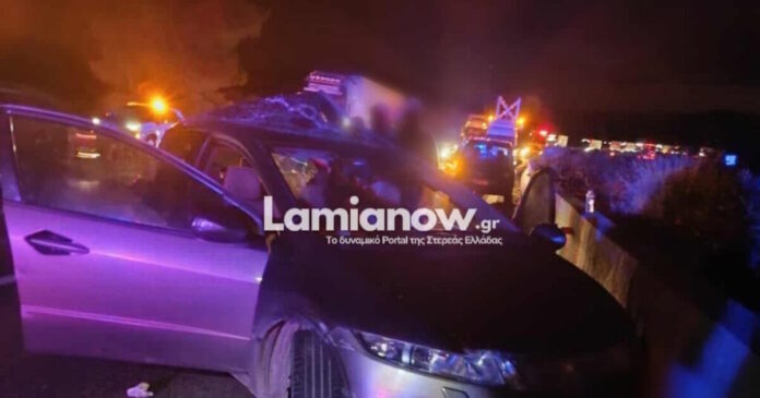 Η σύγκρουση ήταν σφοδρή, με αποτέλεσμα το αυτοκίνητο να εκτιναχθεί πάνω στο στηθαίο του δρόμου, σύμφωνα με το lamianow.gr.