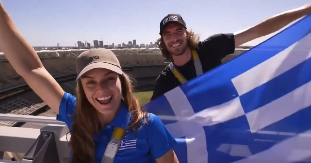 Η ελληνική αποστολή στην Αυστραλία με τους Τσιτσιπά και Σάκκαρη να πρωταγωνιστούν ανέβηκαν στην οροφή του «Ozone Optus Stadium» και ανέμισαν την ελληνική σημαία. Το στάδιο είναι στο Περθ και η οροφή βρίσκεται στα 42 μέτρα.