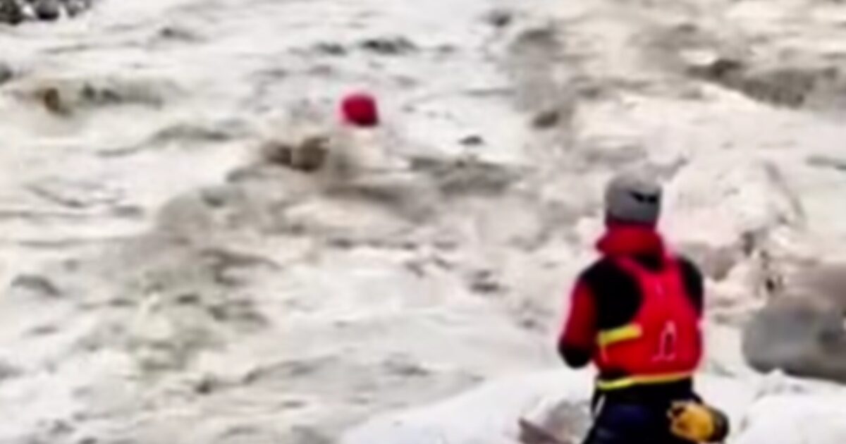 Τότε, ο χείμαρρος τον παρέσυρε για λίγα μέτρα, αν και ήταν δεμένος με σχοινί ασφαλείας και τον κρατούσαν οι συνάδελφοί του, όμως χάρη στην εμπειρία τους, ο άνδρας κατάφερε να βρει σε σημείο που υπήρχαν βράχια και να βγει σώος στην όχθη.