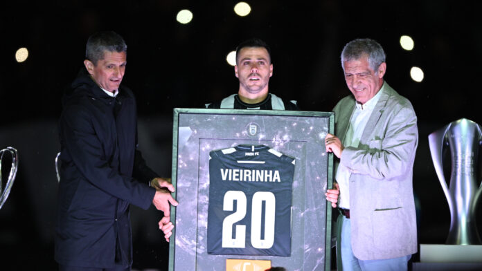 Μετά την λήξη της αναμέτρησης κόντρα στην ΑΕΚ ο ΠΑΟΚ τίμησε τον μεγάλο αρχηγό του Αντελίνο Βιεϊρίνια. Ο Πορτογάλος σε μια λαμπή εκδήλωση πήρε το μικρόφωνο και απευθύνθηκε προς τον κόσμο του συλλόγου τονίζοντας πως η Τούμπα είναι το σπίτι του.