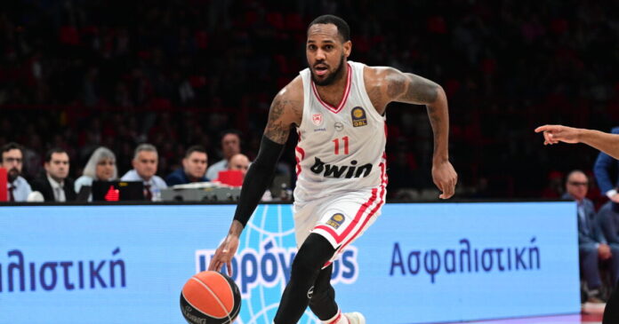 Η δωδεκάδα του Ολυμπιακού: Τόμας Γουόκαπ, Μόντε Μόρις, Φρανκ Νιλικίνα, Τάιλερ Ντόρσεϊ, Εβάν Φουρνιέ, Σέιμπεν Λι, Κώστας Παπανικολάου, Σάσα Βεζένκοβ, Άλεκ Πίτερς, Νίκολα Μιλουτίνοβ, Ντόντα Χολ, Κώστας Αντετοκούνμπο.