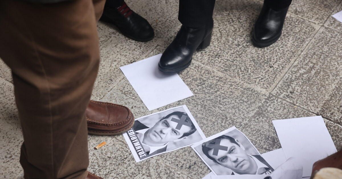 Εκείνοι πάνω στις εικόνες είχαν γράψει «ανεπιθύμητος», τονίζοντας ότι πρόδωσε τη Μακεδονία.