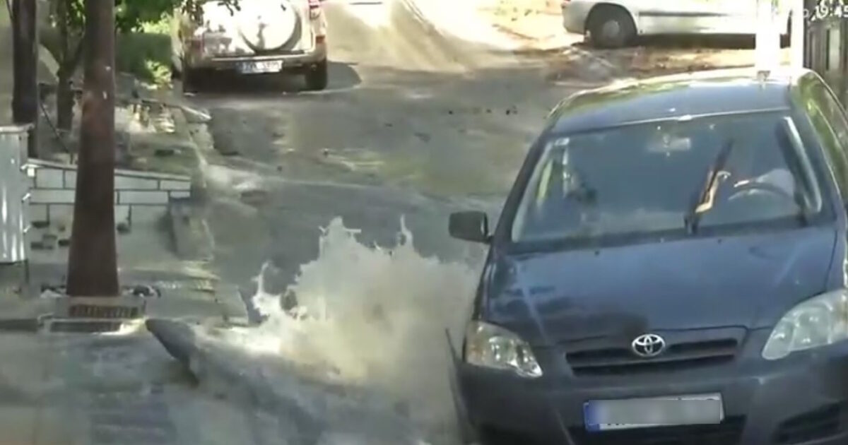 Όπως μετέφερε η ρεπόρτερ της εκπομπής, τα νερά τρέχουν από τις 4 το μεσημέρι και από τη σοβαρή αυτή βλάβη υψώθηκε πίδακας νερού που έφτασε και τα 30 μέτρα!