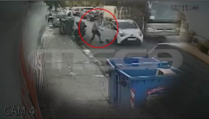 Το λευκό ΙΧ σταματάει μέσα στη μέση του δρόμου, εν ώρα μάλιστα αιχμής, επί της Λεωφόρου Ποσειδώνος. Αρχικά ανοίγει η πόρτα του συνοδηγού και βγαίνει ένας από τους δράστες.